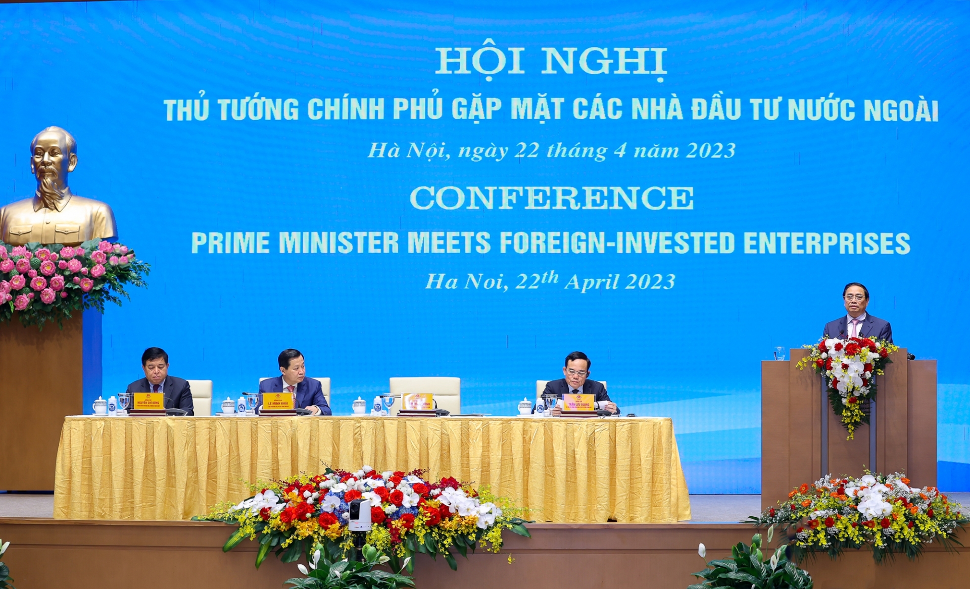 Ngày 22-4, tại Hà Nội, Thủ tướng Chính phủ Phạm Minh Chính chủ trì hội nghị gặp mặt các nhà đầu tư nước ngoài theo hình thức trực tiếp và trực tuyến với điểm cầu 63 địa phương và khoảng 80 điểm cầu tại nước ngoài. Cùng dự hội nghị có Phó Thủ tướng Chính phủ Lê Minh Khái, Phó Thủ tướng Chính phủ Trần Lưu Quang, lãnh đạo các bộ, ngành, địa phương, cộng đồng doanh nghiệp đầu tư nước ngoài, các đại diện xúc tiến đầu tư của Việt Nam tại nước ngoài. Tại điểm cầu Khánh Hoà có ông Lê Hữu Hoàng - Phó Chủ tịch Thường trực UBND tỉnh và các doanh nghiệp nước ngoài.